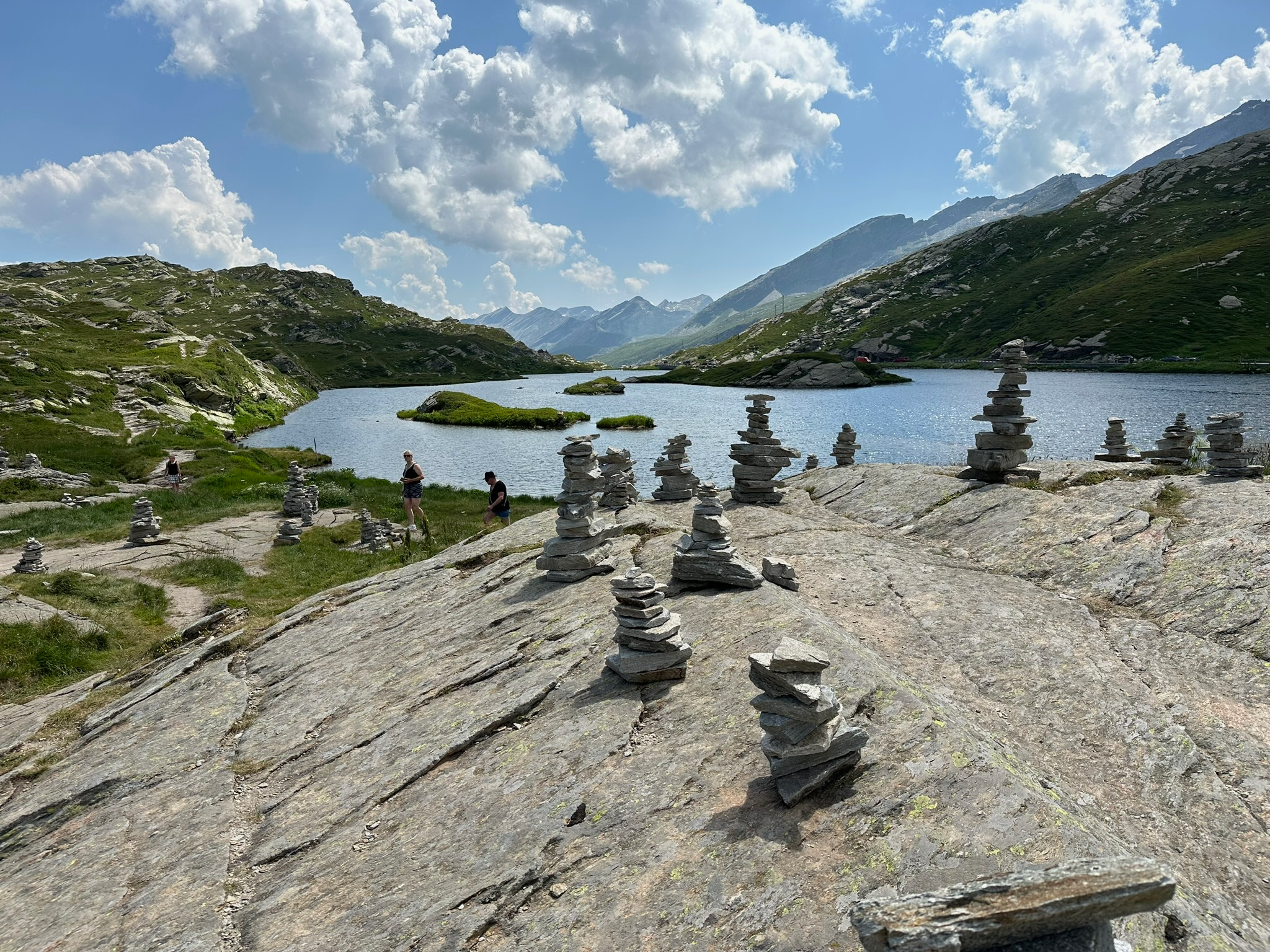 After our lake loop, we took a short scenic drive up the San Bernardino Pass to Laghetto Moesola — sitting above 2000m. The landscape here is dramatically different: treeless, raw, and rocky.