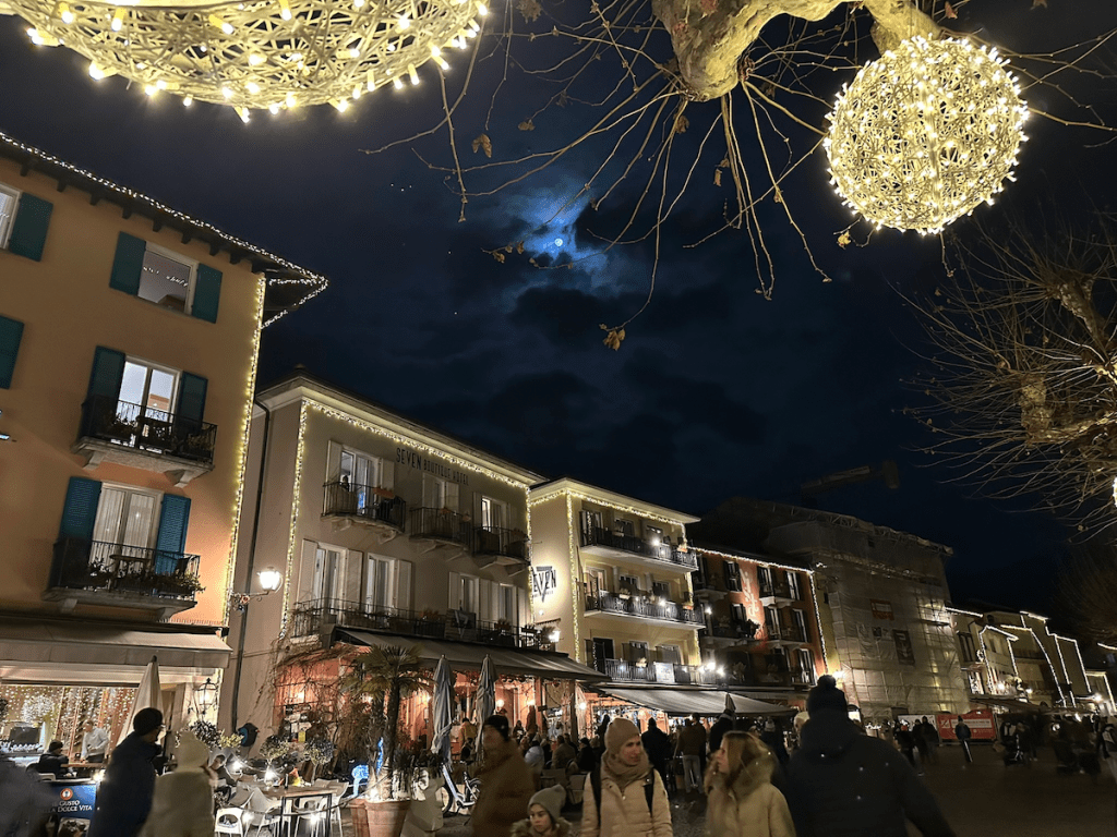 On the way home, the little ones fell asleep. We drove straight to Ascona for the New Year’s Day Fireworks Show. Entering the underground parking lot, we spotted an A4 sized paper saying that the show was cancelled. We were confused, but went ahead to park. We agreed that Ascona is worth a visit even without fireworks. Later at home we saw the devastating news about the New Year’s Eve celebration party that ended tragically for so many young souls in Crans Montana. No wonder the fireworks and other extravaganzas planned for the beginning of the year, were cancelled or toned down. I think you would agree that Ascona is magical with its winter lights.