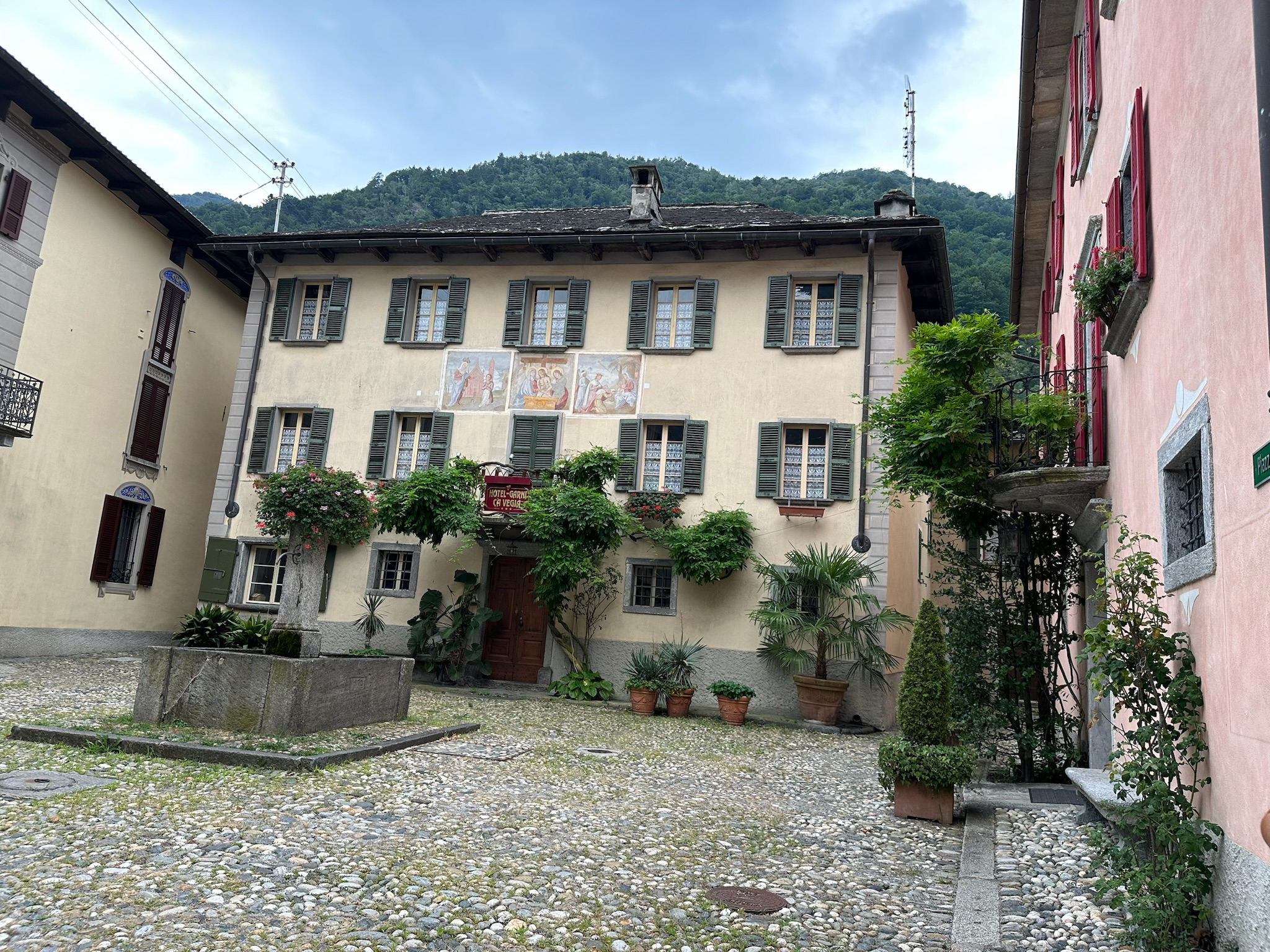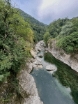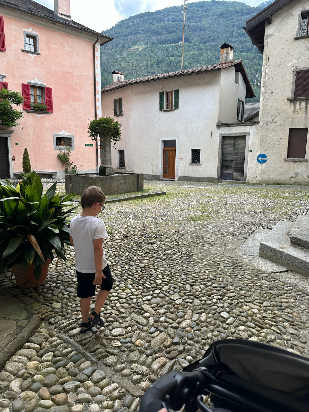Overall, Maggia is a small village with about 2.5 k residents. It seems to be a good base for the many trials. There are many parking spots, convenience stores and restaurants. Looking at the mountains from the car park, I could see some chapels and waterfalls that I would have loved to explore but they were not accessible with a buggy. I am sure we will be back though.
